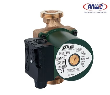Bomba circuladora para sistemas de agua caliente sanitaria de tipo cerrados y presurizados o a vaso abierto. También adecuada para sistemas de energía solar. Cuerpo bomba de bronce. Caja del motor de aluminio fundido a presión. Rodete de tecnopolímero. Eje del motor de cerámica montado sobre rodamientos de grafito lubricados por el mismo líquido bombeado. Camisa del rotor, camisa del estator y brida de cierre de acero inoxidable. Arandela de presión de cerámica, anillos aisladores de etileno propileno. Motor asíncrono, de rotor húmedo y protegido por una resistencia, no necesita protección contra las sobrecargas.